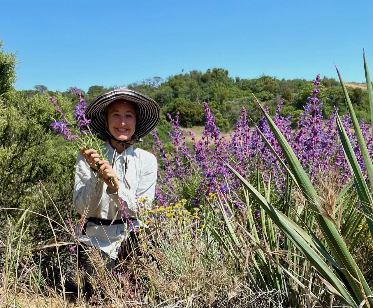 Our essential oils and hydrosols (therapeutic herbal waters) are distilled from highly medicinal plants native to Santa Barbara, California. These plants have a rich ethnobotanical history being used by the California Native Americans, Spanish settlers, and even physicians. Many are used for ceremonial, healing, and spiritual purposes and are considered sacred herbs. California White Sage, Mugwort, and Sagebrush are three such herbs used to cleanse, purify, and protect the body, mind, and spirit. Infuse essential oils in the air through an atomizer or in warm water.